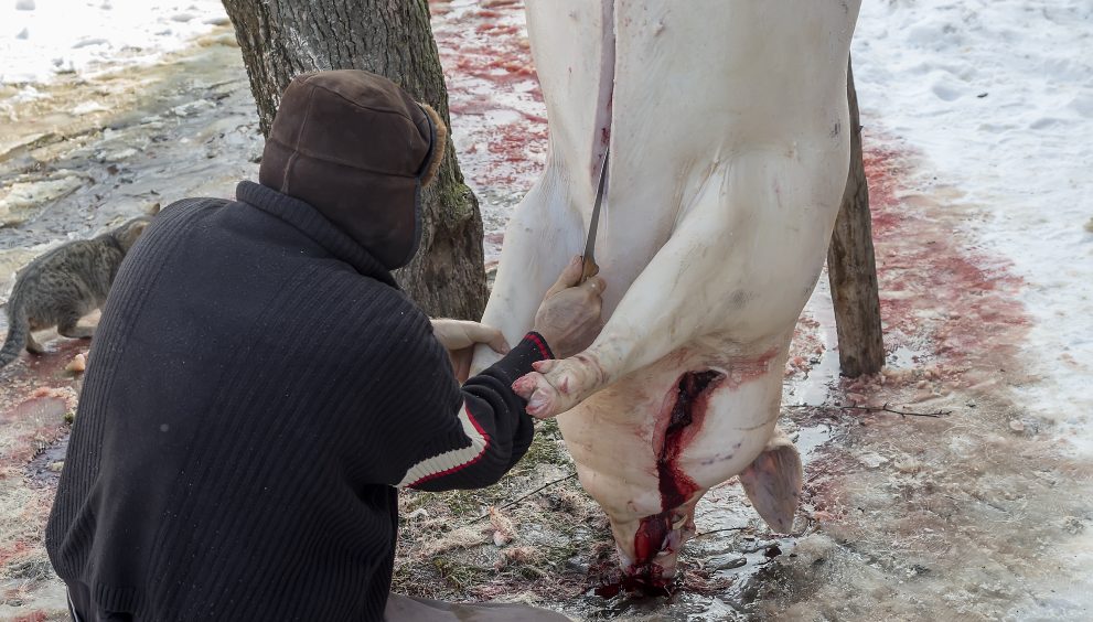 Slaughter should be performed swiftly and skillfully with a sharp knife.